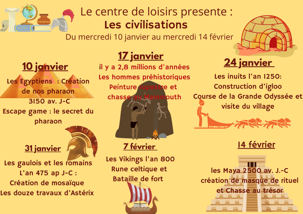 Vous trouverez ci-joint le programme du centre de loisirs du mercredi 10 janvier au mercredi 14 février.