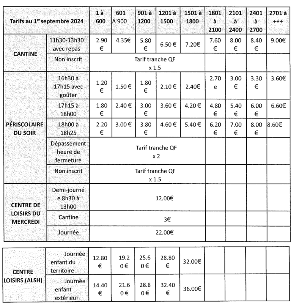 A noter également que la CAF nous demande de revoir rapidement les tarifs du centre de loisirs du mercredi. Vous serez tenu informé de ce changement.