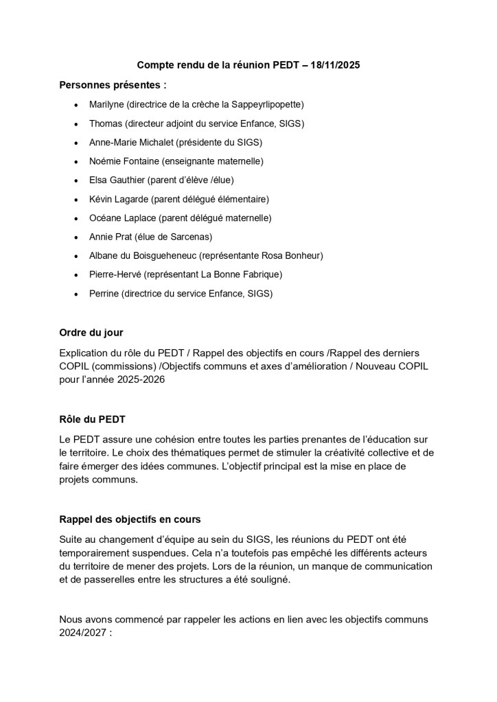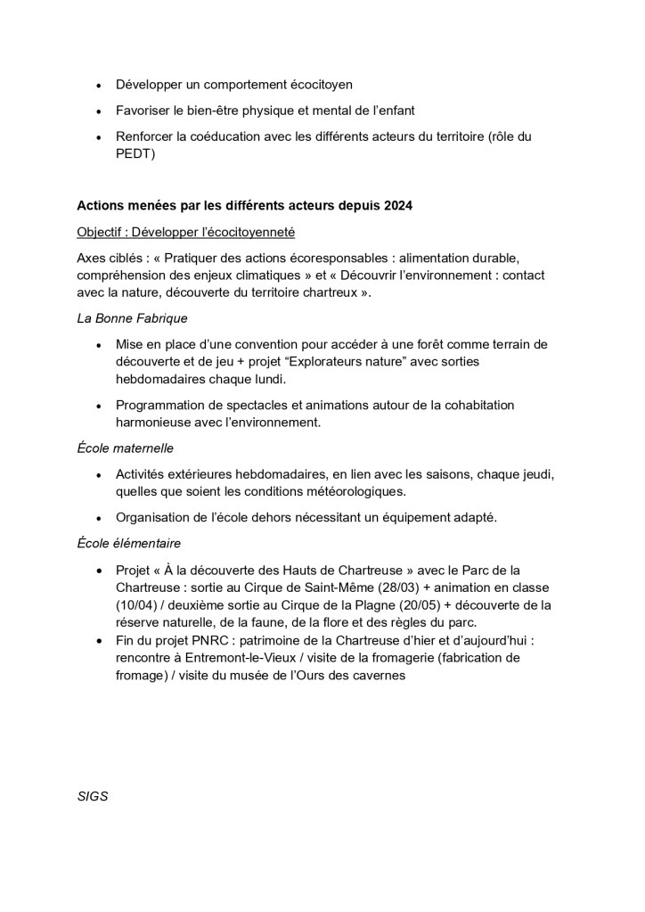 Le Projet Éducatif De Territoire (PEDT) a pour vocation de lier et de reconnaître les postures éducatives sur le territoire. Vous trouverez le document 2024/2027, en cliquant sur le lien ci-dessous : https://sigs38700.fr/wp-content/uploads/2024/09/redaction-pedt-2024.-final.pdf